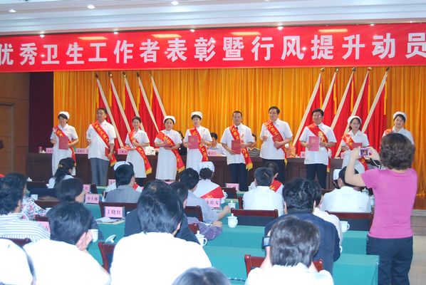 继2006年百名优秀护士评选表彰后,市政府再次对百名优秀卫生工作者予以表彰。5月10日下午,全市百名优秀卫生工作者暨“加强行业作风建设,规范卫生服务行为”表彰动员会在市行政中心小会堂举行。我院共有7名医护人员受到表彰,并领取了奖杯和证书。