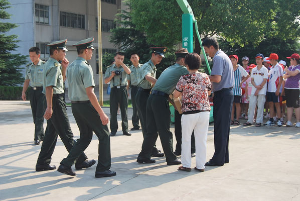 为了迎接八一建军节的到来,7月31日上午,我院关工委、工会组织职工子女到73909部队进行联谊活动。参加的学生共有49人,年龄在7—15岁之间。我们上午8:00到达该部队,政治处郝主任、训练处桑处长热情地接待了我们。同学们首先观看了庄严的升旗仪式,接着被分成5个小组,每组2个教官,在教官的手把手指导下,做了队列训练。在炎炎烈日下,同学们学习得很认真,没有一个叫苦叫累。艰苦的队列训练后,同学们参观了学兵四队的宿舍,在那里,教官向同学们现场演示了怎样将被子叠成豆腐块状。参观完宿舍后,同学们来到多功能厅观看了教育片《国旗护卫队》。很多同学说,今天的活动对自己很有启发,回家后要写日记或者作文把今天的经历记录下来。在同学们参观的同时,我院篮球队与部队篮球队正在进行一场激烈的比赛,在骄阳似火的球场上,他们本着友谊第一、比赛第二的精神,赛出了各自的风采。半天的时间很快过去,同学们都怀着意犹未尽的心情离开了部队。