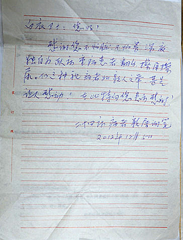 肺病科住院患者感谢信