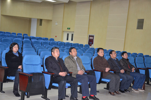 在会议中心观看医院宣传片。