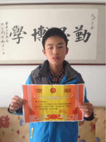 2014年,我院关工委根据市关工委的部署要求积极组织中、小学生参与市直关工委开展的“学习践行社会主义核心价值观,老少同心共筑中国梦”的征文活动,活动中常华瑾、刘翔宇喜获中学组三等奖。