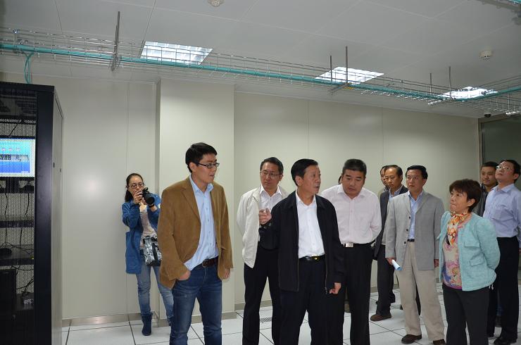 高厅长一行在我院新投入使用的会议中心观看医院发展宣传片。