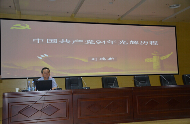 刘德新校长以生动的语言为各位党员讲述了中国共产党94年的光辉历程。“94年的光辉历程雄辩地证明,中国共产党不愧是伟大、光荣、正确的马克思主义政党。只有在中国共产党的坚强领导下,国家才能繁荣富强,人民才能生活幸福,中华民族才能实现伟大复兴。”刘校长以丰富的史料、鲜明的观点,从党的发展历程及历史经验等方面,详细讲述了中国共产党由诞生到发展壮大、从建立新中国到带领全国各族人民建设小康社会的艰苦而辉煌的历程。既有理论高度,又具实践意义,对新形势下广大党员干部继承和发扬党的优良作风和光荣传统,加强党性修养具有较强的指导作用。