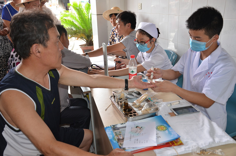 2016年8月6日,我院组织一支由眼科、心血管科、糖尿病科及神经外科共计14人的医疗团队前往霍山县太阳乡开展义诊活动,院领导张院长亲自带队。太阳乡位于霍山县西南,由于地处大别山腹地,医疗资源相对匮乏,一听说中医院的专家要来坐诊,乡亲们纷纷从四里八乡赶过来,我们赶到乡卫生院时,已有许多人在此等候。短短一上午时间,专家们就为一百多名乡亲做了健康普查和问诊,最终确诊了三十多例白内障。此外,还免费为糖尿病患者做了血糖检测,其他相关的疾病,专家们也都一一做了详尽的检查,本次义诊活动取得了一致好评,乡亲们都希望这样的活动能够多举办一些,基层百姓需要我们的专家。