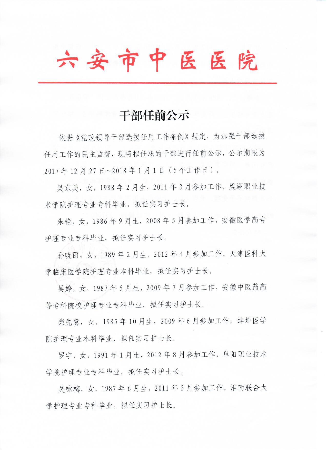 关于吴东美等九名同志任职的公示