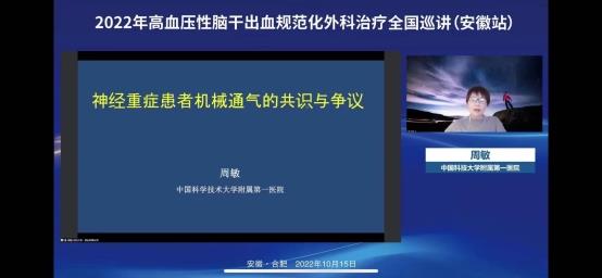 中科大一附院神经重症周敏主任做“神经重症患者机械通气的共识与争议”专题讲座