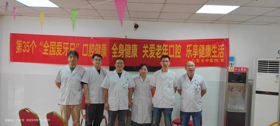 为关爱老年口腔健康,进一步推广和普及牙齿保健知识,预防和减少口腔疾病的发生,在第35个全国爱牙日来临之际,由六安市中医院口腔科朱光来、丁作友、姜辉、田智丰、朱蕴生、徐丽等人组成的专家团队于9月18日下午在六安市叶集区姚李镇养老服务中心开展了关爱老年口腔健康活动,为现场老人提供免费的口腔检查和口腔保健知识普及。