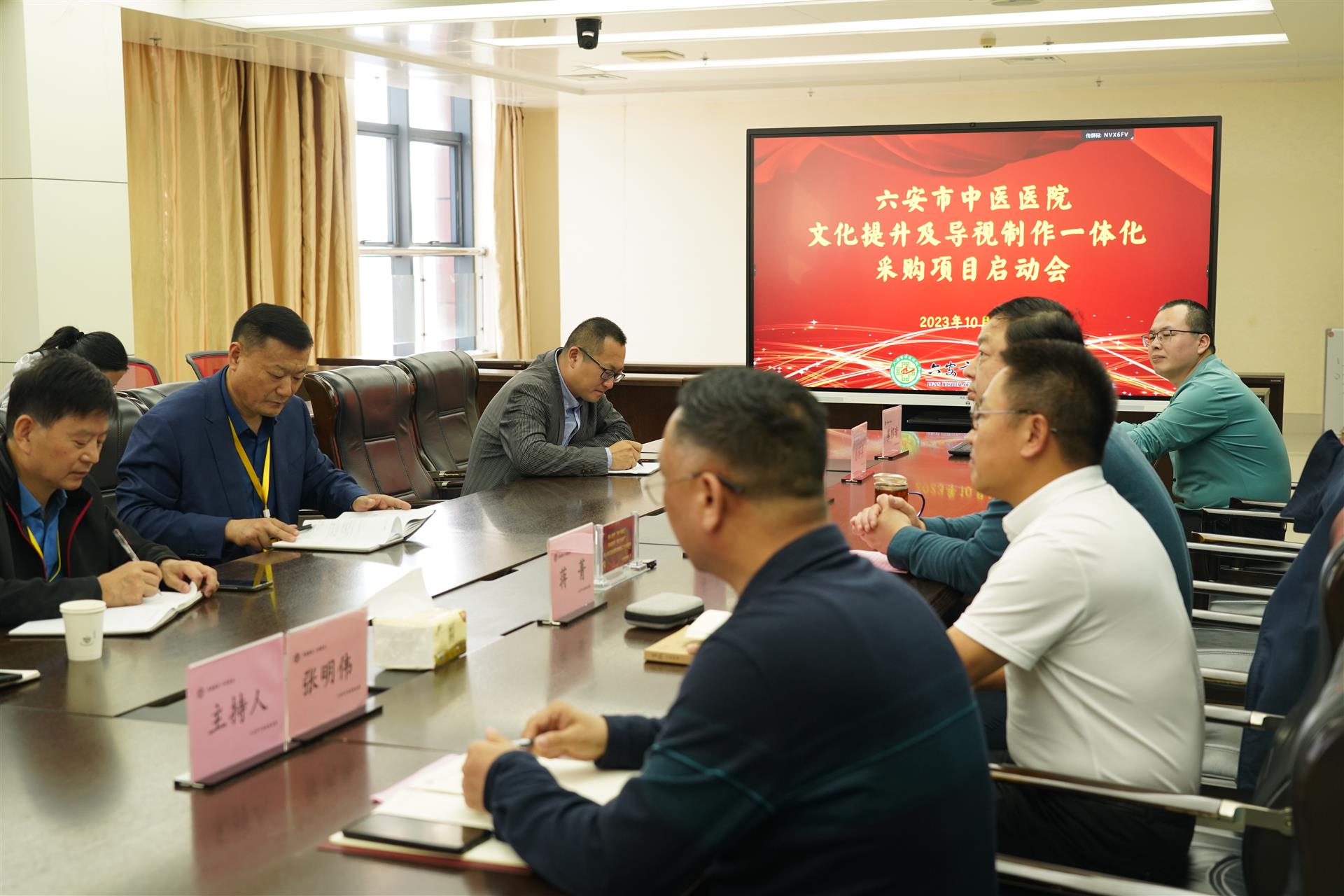 为提高医院文化建设,匹配新时期医院的形象和气质,打造独具中医特色的医院文化,2023年10月11日下午,六安市中医院召开文化提升及导视制作一体化项目启动会。院党委书记姜风出席会议并讲话,党政领导班子,职能科室负责人,临床医技科室科主任、护士长,大略公司董事长蒋菁、项目总监崔彭晴及其团队参加会议,会议由党委委员张明伟主持。
