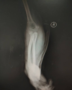 患儿,女,11岁,5月14日因“外伤后右肘肿痛1小时余”入院,术前X线提示右侧桡骨颈骨折,O’Brien分型Ⅱ型,入院后我科陈义权主任立即和张浩医生采用中医特色骨折夹板固定骨折处,于5月17日予右桡骨颈骨折闭合复位弹性髓内钉内固定术,术中我科陈义权主任采用Metaizeau技术,在腕部做一长约1cm切口,利用弹性髓内钉闭合复位骨折端。术后3月复查,骨折端基本愈合。我科成功将中医特色治疗与小儿骨折微创治疗技术完美结合。