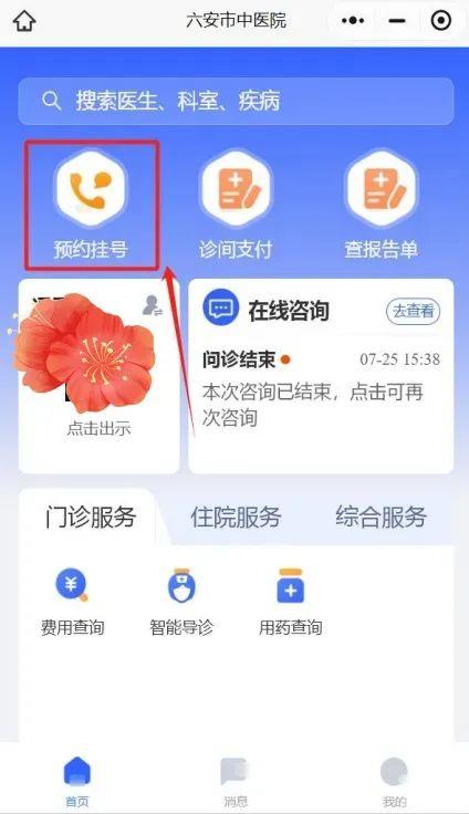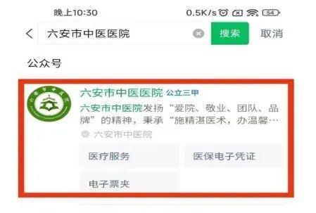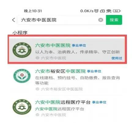 1、通过微信搜索“六安市中医医院”微信公众号和小程序。
