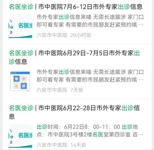 为了让更多群众家门口就能看名医,医院通过公众号及时推送市外专家坐诊信息。同时,提高院内电子屏利用率,让到院就医患者能了解市外专家门诊坐诊信息。
