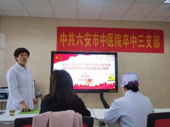 1月26日下午,卒中胸痛总支卒中三支部党课学习活动在B座19楼示教室如期举行。卒中胸痛总支部书记罗志远就《习近平总书记关于医疗卫生行业发展和中医药事业发展的重要指示精神》为主题开展党课讲座。罗书记指出,习近平总书记关于中医药的一系列重要论述,是新时代坚定中医药自信、发展中医药事业的行动指南和根本遵循。经过党课学习,在讨论环节,各位党员踊跃发言,纷纷表示,要坚定中医药自信,在自己岗位上学习好、利用好中医中药,真正做到“自信、自尊、自觉、自强”,把中医药这一祖先留给我们的宝贵财富继承好、发展好、利用好。