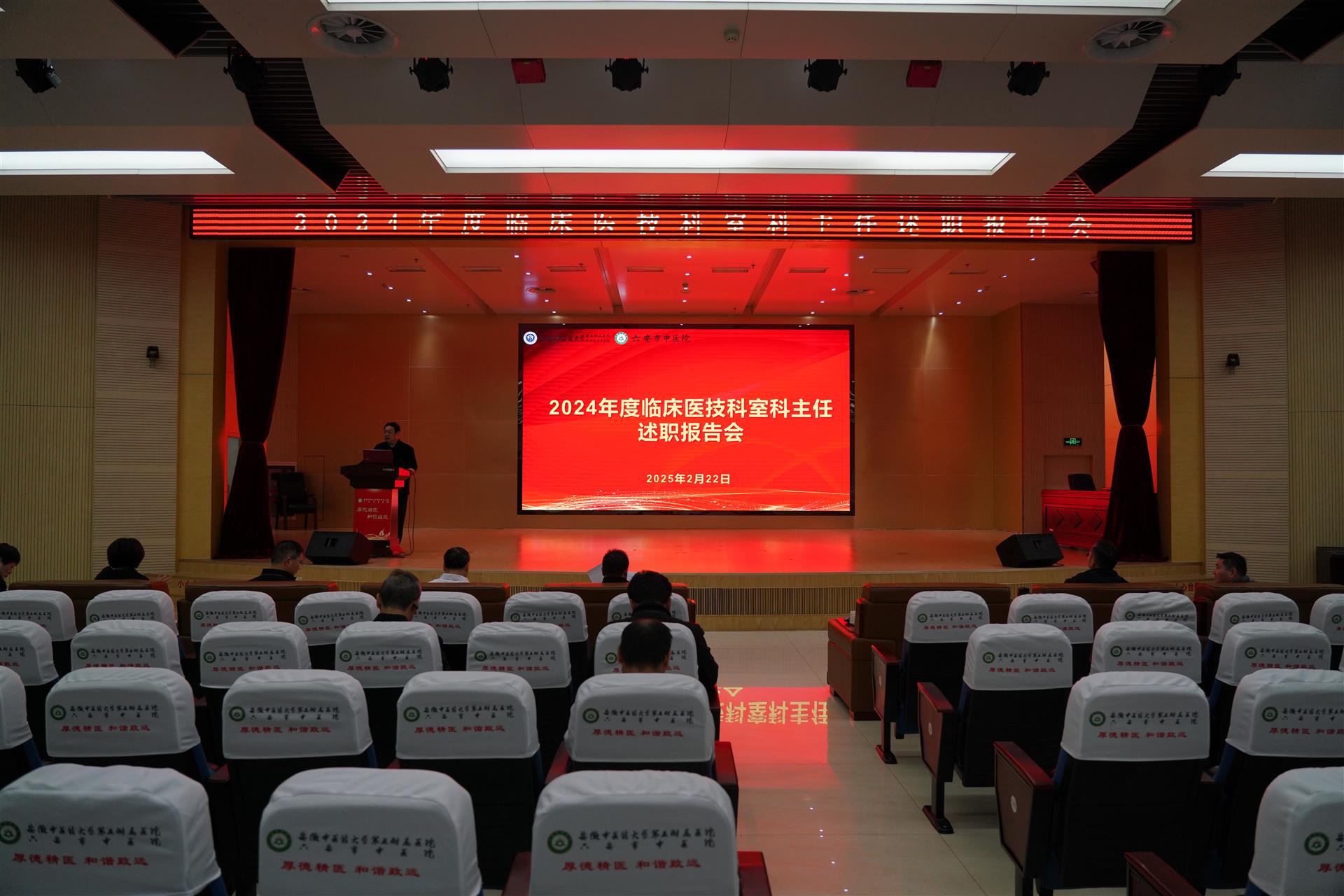 2月22日,六安市中医院召开2024年度临床医技科室主任年终述职报告会。院领导班子、党总支书记及各科室负责人参加会议。