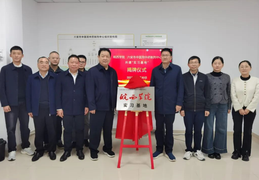 10月30日上午,六安市中医院中药制剂中心与皖西学院共建实习基地揭牌仪式顺利举行。皖西学院生物与制药工程学院副院长刘东,市中医院党委书记姜风,党委副书记、院长李光远等出席揭牌仪式。市中医院副院长束永兵主持揭牌仪式。